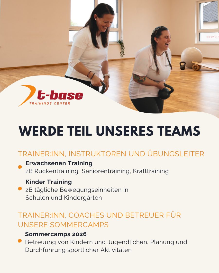 Werde Teil unseres Teams – Jobs & Karriere bei der t-base Konditionsschule